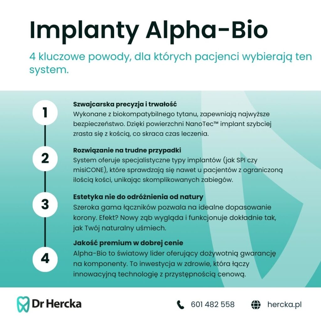 Choć Alpha-Bio jest często wybieranym systemem ze względu na korzystny stosunek jakości do ceny, warto pamiętać, że cena może różnić się w zależności od kliniki oraz indywidualnych potrzeb pacjenta.
