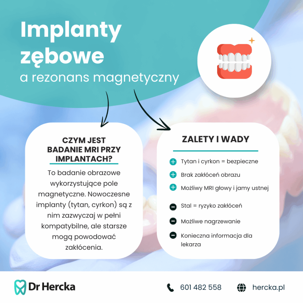 Zatem, mimo że implanty z tytanu czy cyrkonu są zazwyczaj bezpieczne, w niektórych przypadkach warto skonsultować się z lekarzem lub radiologiem przed wykonaniem rezonansu magnetycznego.