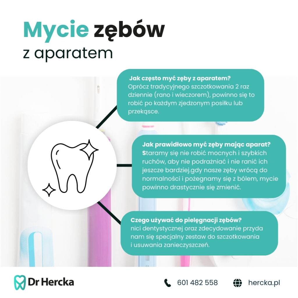 | Częstotliwość mycia zębów | Myj zęby po każdym posiłku oraz 2 razy dziennie. | Utrzymanie zdrowych zębów i aparatu, poprawa estetyki. |