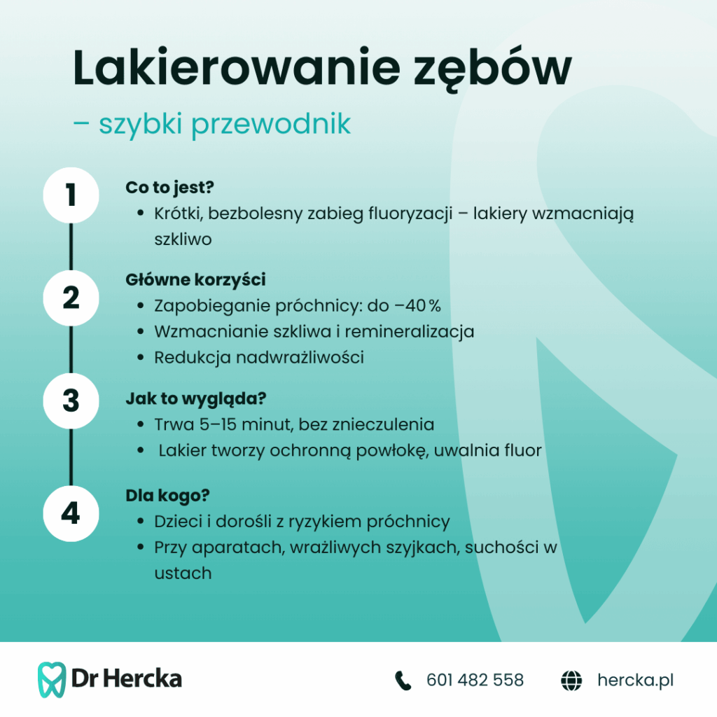 Lakierowanie zębów to procedura zarówno bezpieczna, jak i skuteczna, rekomendowana przez dentystów na całym świecie jako istotny element profilaktyki próchnicy, szczególnie u najmłodszych pacjentów.